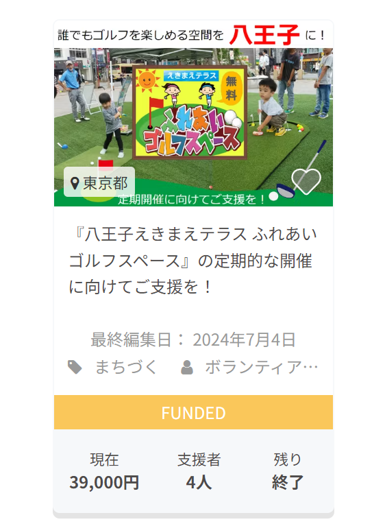campfireで実施していましたクラウドファンディングで、個人・企業様より39,000円のご支援を頂きました!